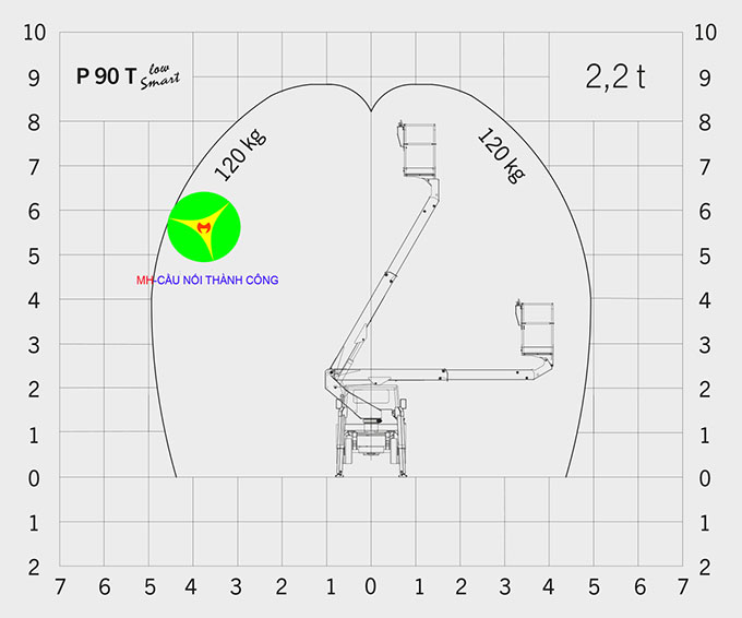 Nền tảng xe nâng người Palfinger P90T đạt đến chiều cao làm việc tối đa 8,80 m với thiết bị làm việc có hiệu suất cao với trọng tải giỏ nâng 120 kg. Chiếc xe phù hợp với lối đi hẹp và có thể được sử dụng để làm việc trong những không gian chật hẹp, nơi các loại xe nâng người khác dường như không thể tiếp cận được (chẳng hạn như đường phố nhỏ hẹp và trong các trung tâm thành phố, nơi mà việc tiếp cận vô cùng hạn chế). Ngoài tính chặt chẽ đáng kể của nó, sự ổn định trong giới hạn bên ngoài của chiếc xe có nghĩa xe hoạt động ổn định, tiếp cận nhiều vị trí làm việc mà không chiếm nhiều diện tích.